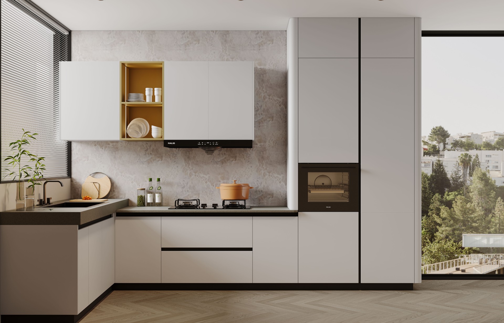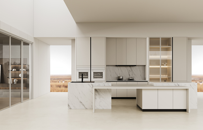 通过pp电子平台厨柜量体裁柜,定制出适合主厨下厨的烹饪区和洗涤区的舒适高度。